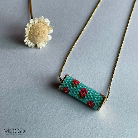 Flower Beaded Pendant in Turquoise
