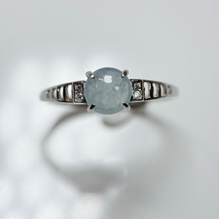 Round Icy Blue-Grey Type-A Jadeite Cabochon S925 Silver Ring